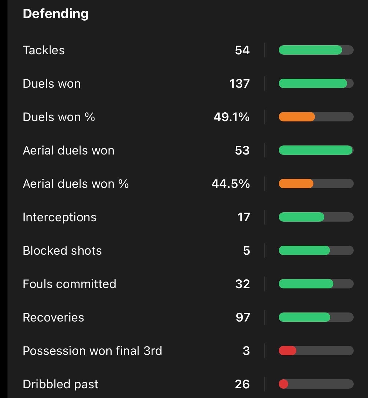 The 6-foot midfielder won 53 aerial duels and averaged 2.38 aerials won per 90 this season, which put him in the 98th percentile of the league. Looking specifically at New York City, only defender Thiago Martins won more aerial duels (64).