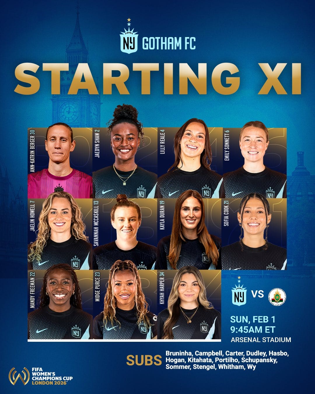 Head Coach Juan Carlos Amorós made meaningful changes to the Starting XI that lost to Corinthians mid-week, with Khyah Harper at striker, Sofia Cook spearheading the midfield, and defender Kayla Duran earning her first start since November 2, 2025. Rose Lavelle was rested after suffering a head injury in the Corinthians loss, and Gabi Portilho spent the game on the bench.