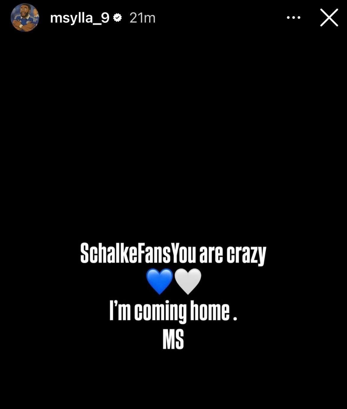 No deal was reached on what was transfer deadline day in Germany, and Sylla took to his personal Instagram account this evening to address the swirl of rumor and speculation about his future, posting blue and white heart emojis (the club colors of Schalke) along with the message "SchalkeFansYou [sic] are crazy I'm coming home. MS" on his Stories.