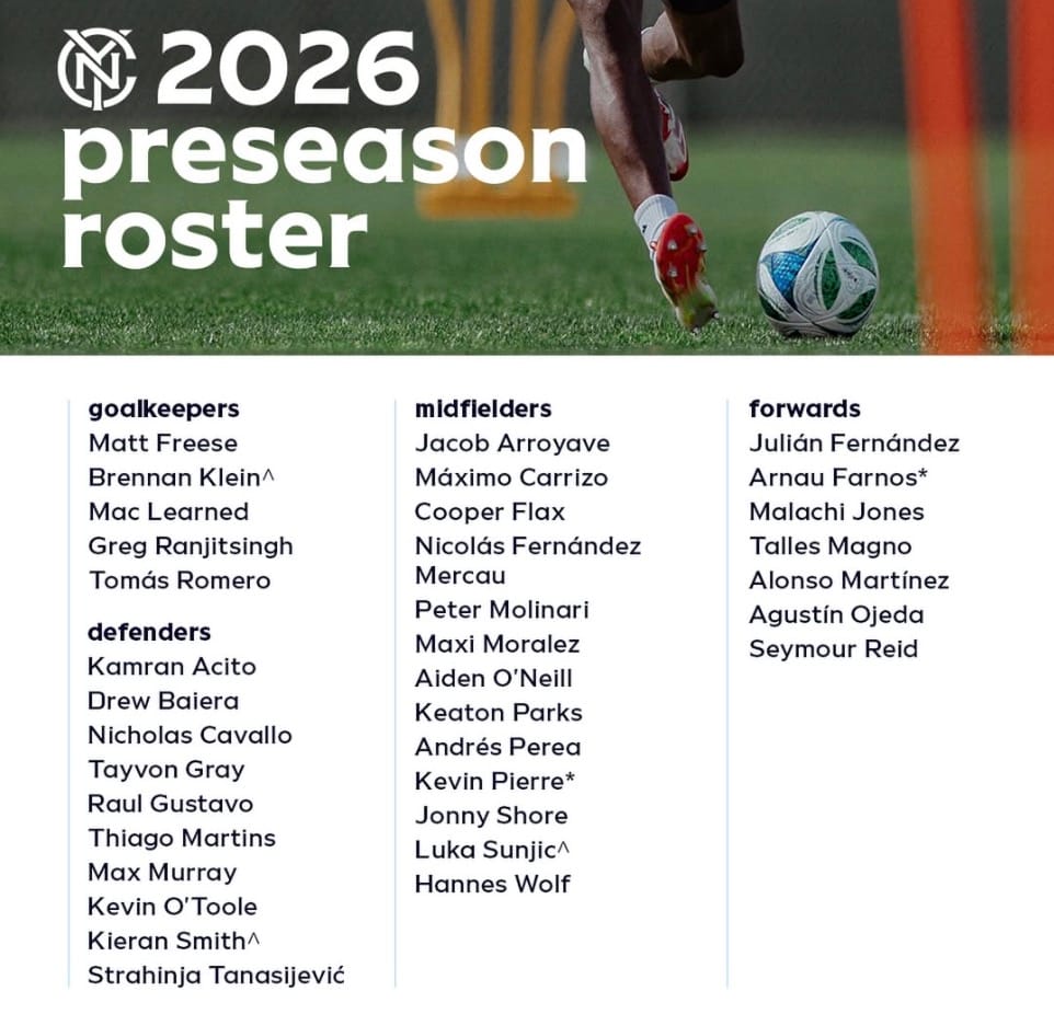 Below, you can read through the entirety of the NYCFC traveling roster for preseason, and if you need a reminder of the full schedule of events for NYCFC's 2026 preseason, you can read more about that here.