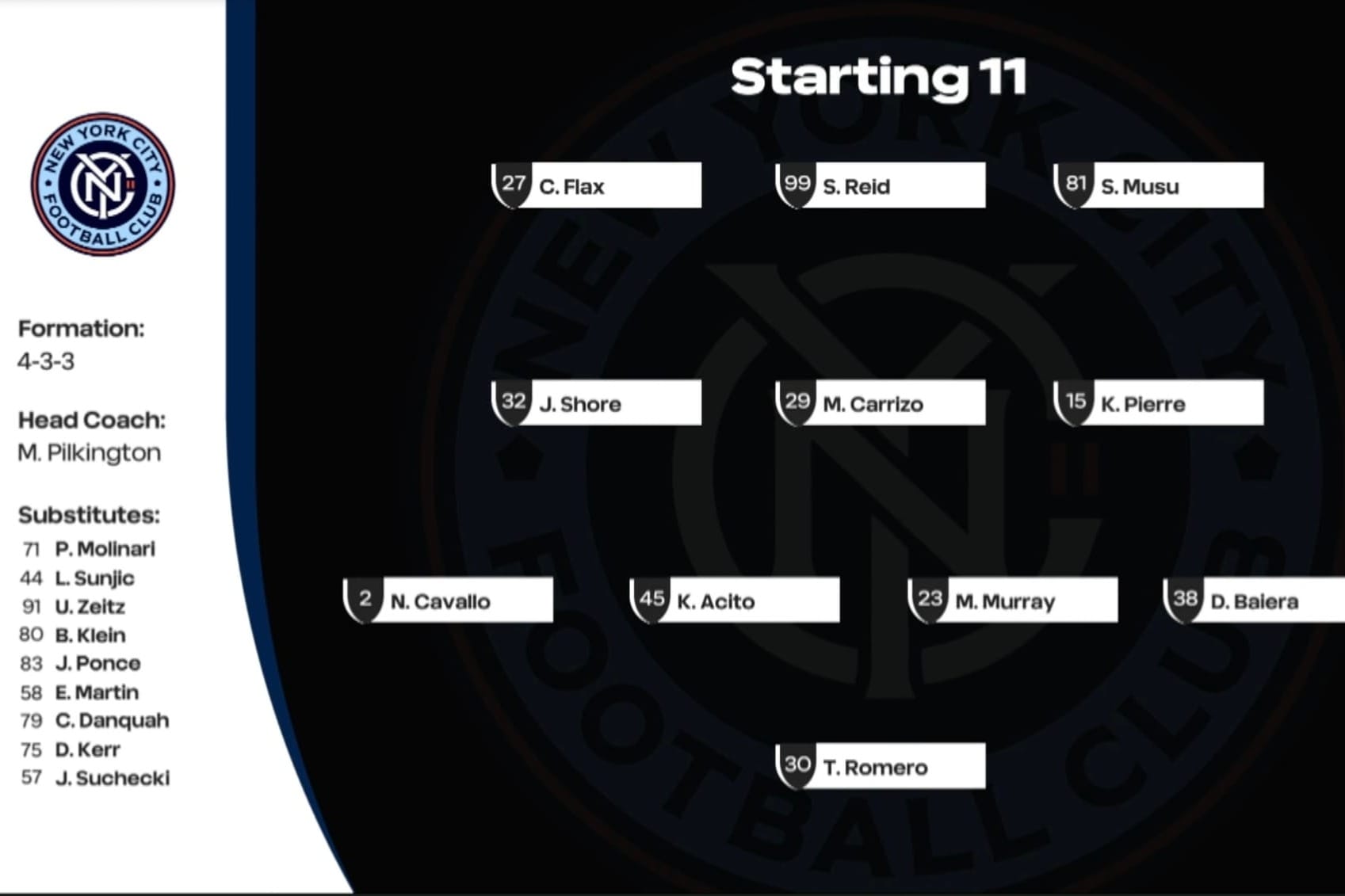 Romero, Reid, Carrizo, and Pierre were four of the 10 players in the NYCFC II starting lineup who are under contract with the full MLS squad, not the Next Pro team.