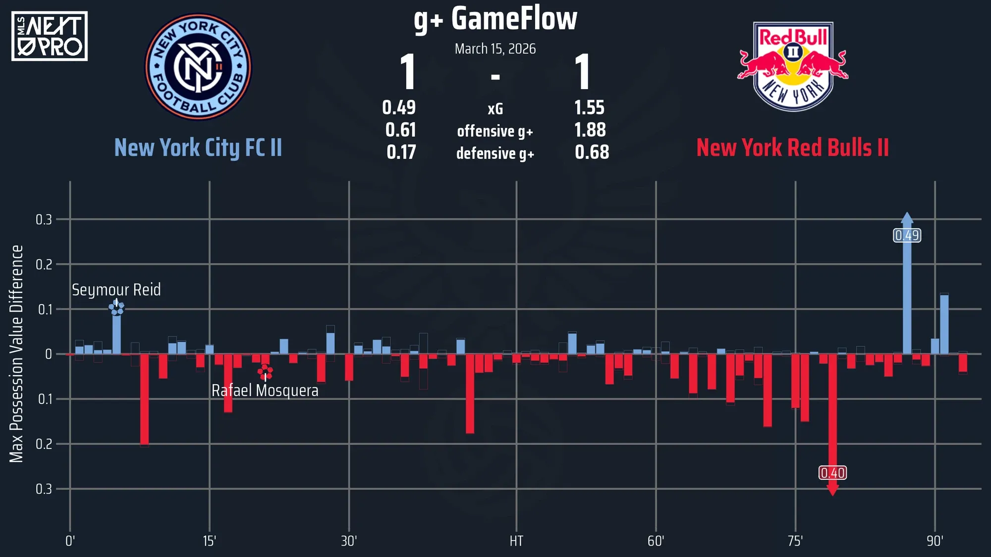 Máximo Carrizo gained possession after the Pierre intervention and smoothly played Reid in on goal, with the 18-year-old Jamaica international making no mistake while perfectly placing his shot past RBNY II goalkeeper Tobias Szewczyk.