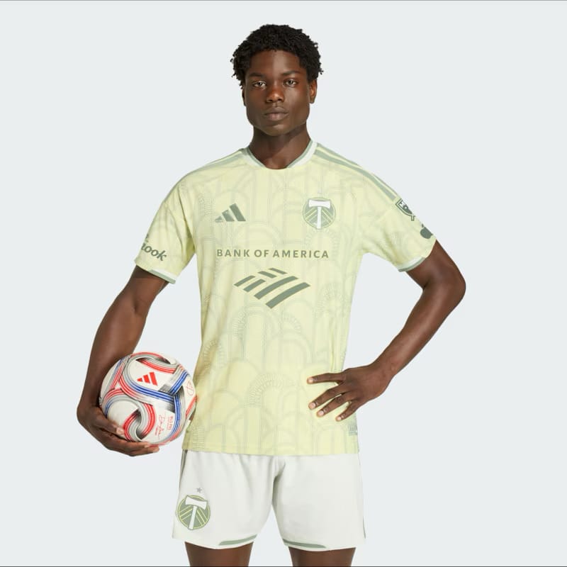 It's not easy for a soccer shirt to pull off a light shade. The arch motif celebrates the 100th year of Providence Park.